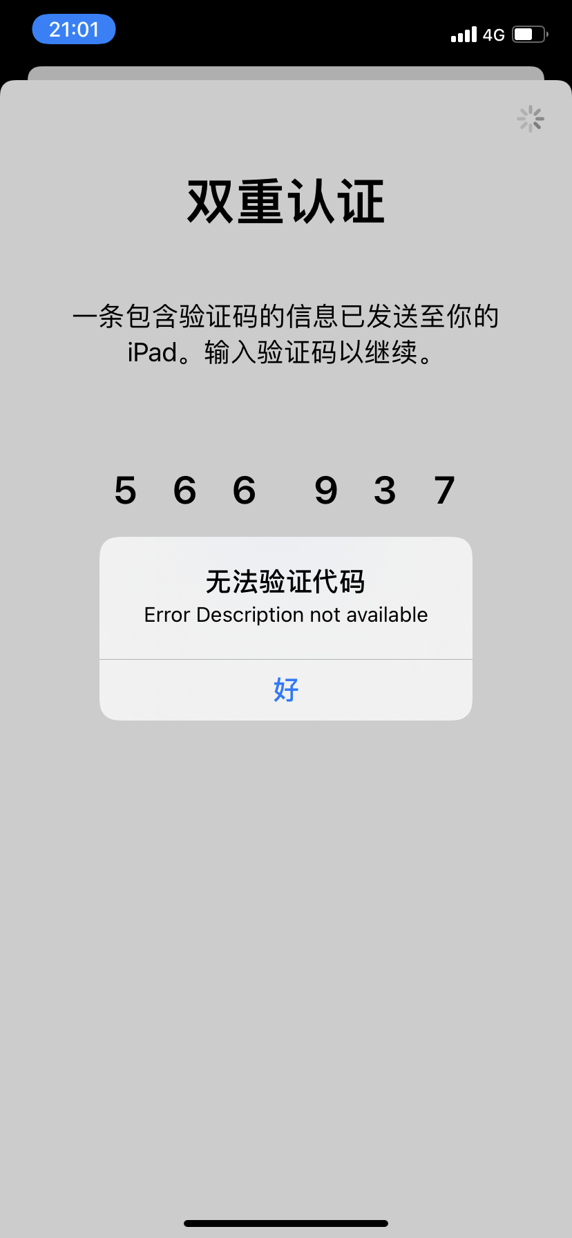 iPhone中在App Store登陆美区id时,输入验证码后提示无法验证代码或验证失败