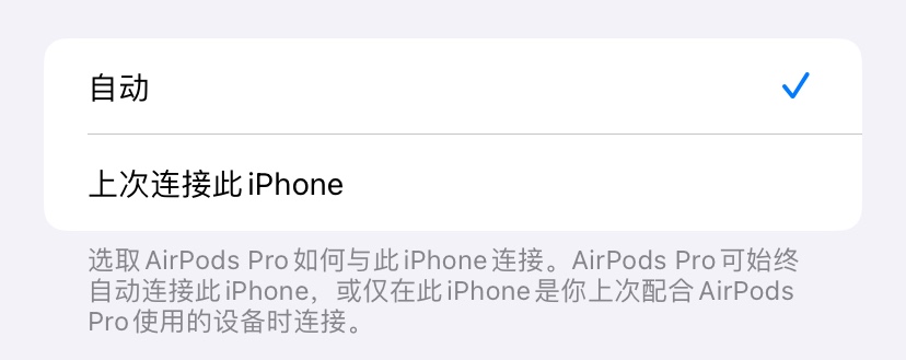 A.首先您在AirPods设置界面找到“连接到此iPhone”功能,并将“自动”切换为“上次连接此iPhone”