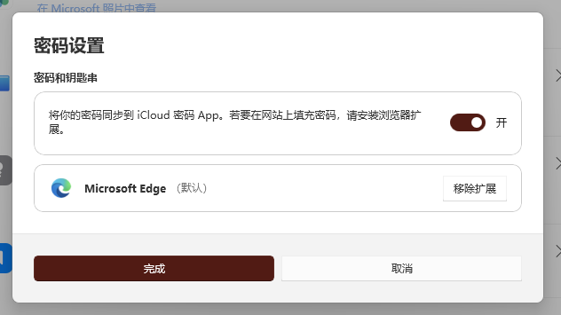 在Edge中点击iCloud书签和iCloud密码却是这样: