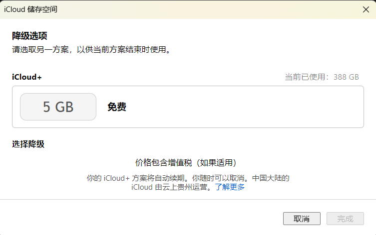我的iCloud+ 2T方案用了好几年了,打算降级到200G或者50G。结果发现只有降到5G容量的方案!