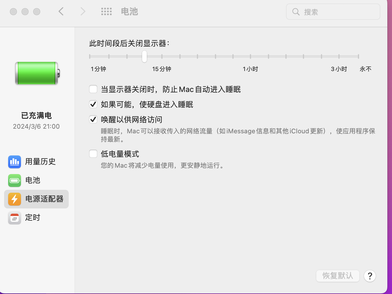 我的电池显示在三天前充满电了,我是外接了显示器的typeC提供电源的,我的电量一直是100%,为啥还在显示充电状态呢
