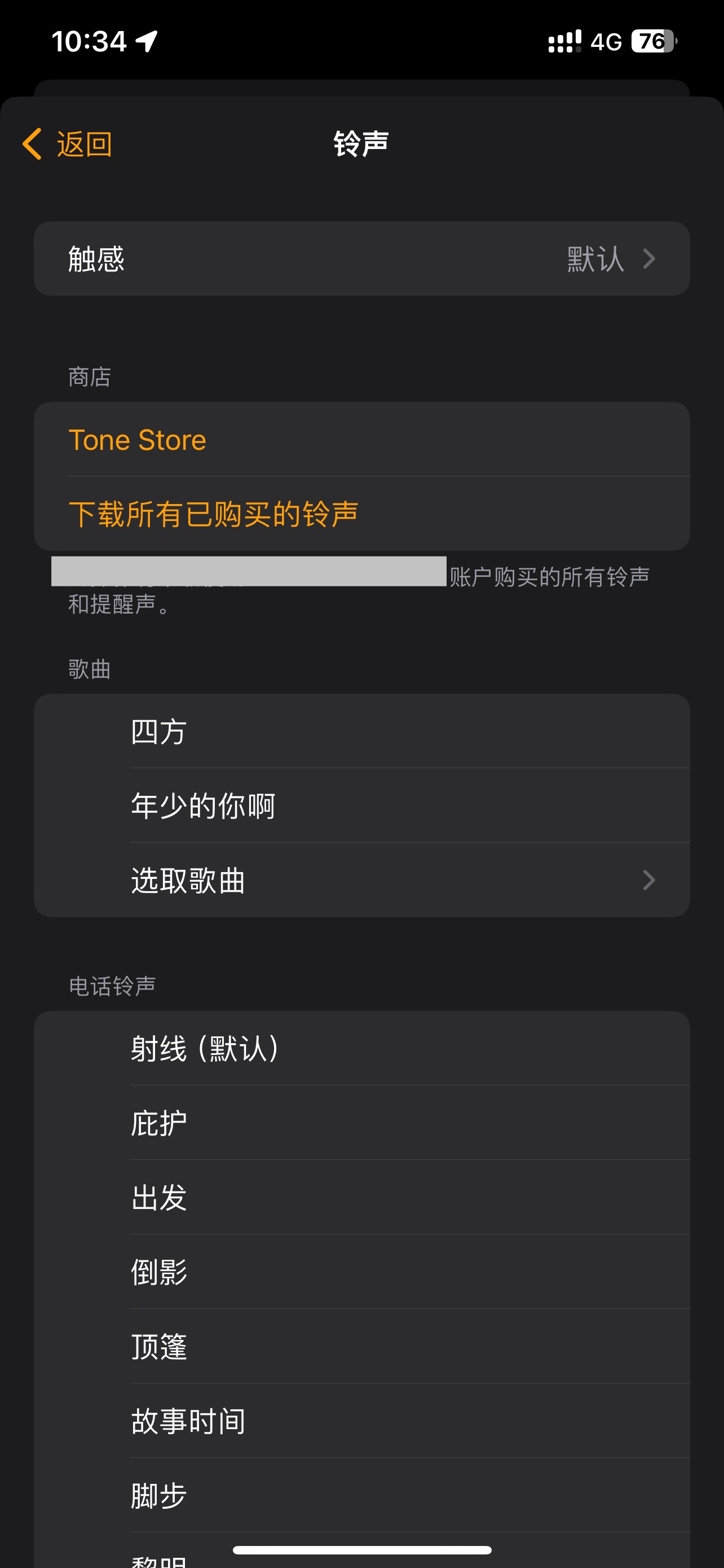 只可以选择库乐队制作的铃声,或者默认铃声