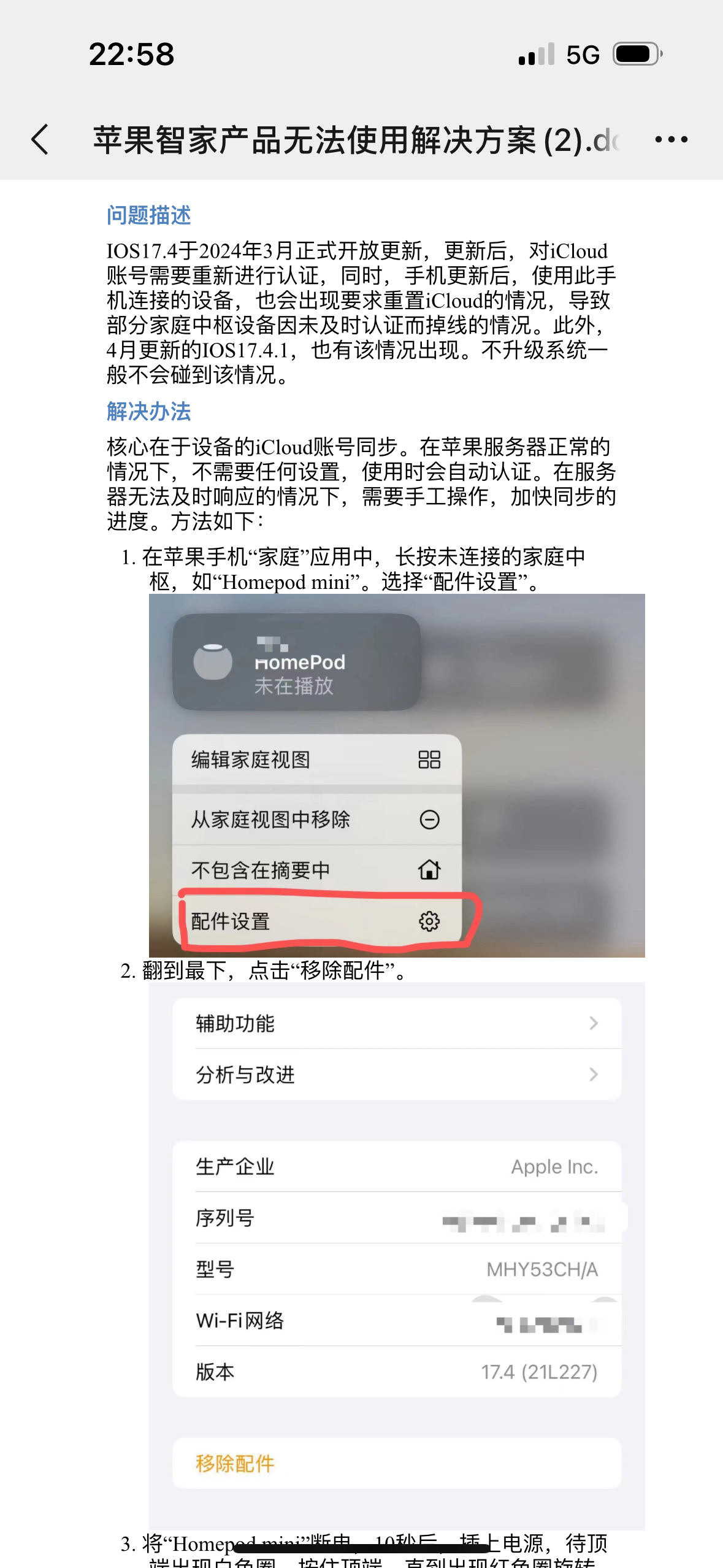 家庭应用出bug,无法移除homepod, 点击任何按钮都没有反应,ios17.4