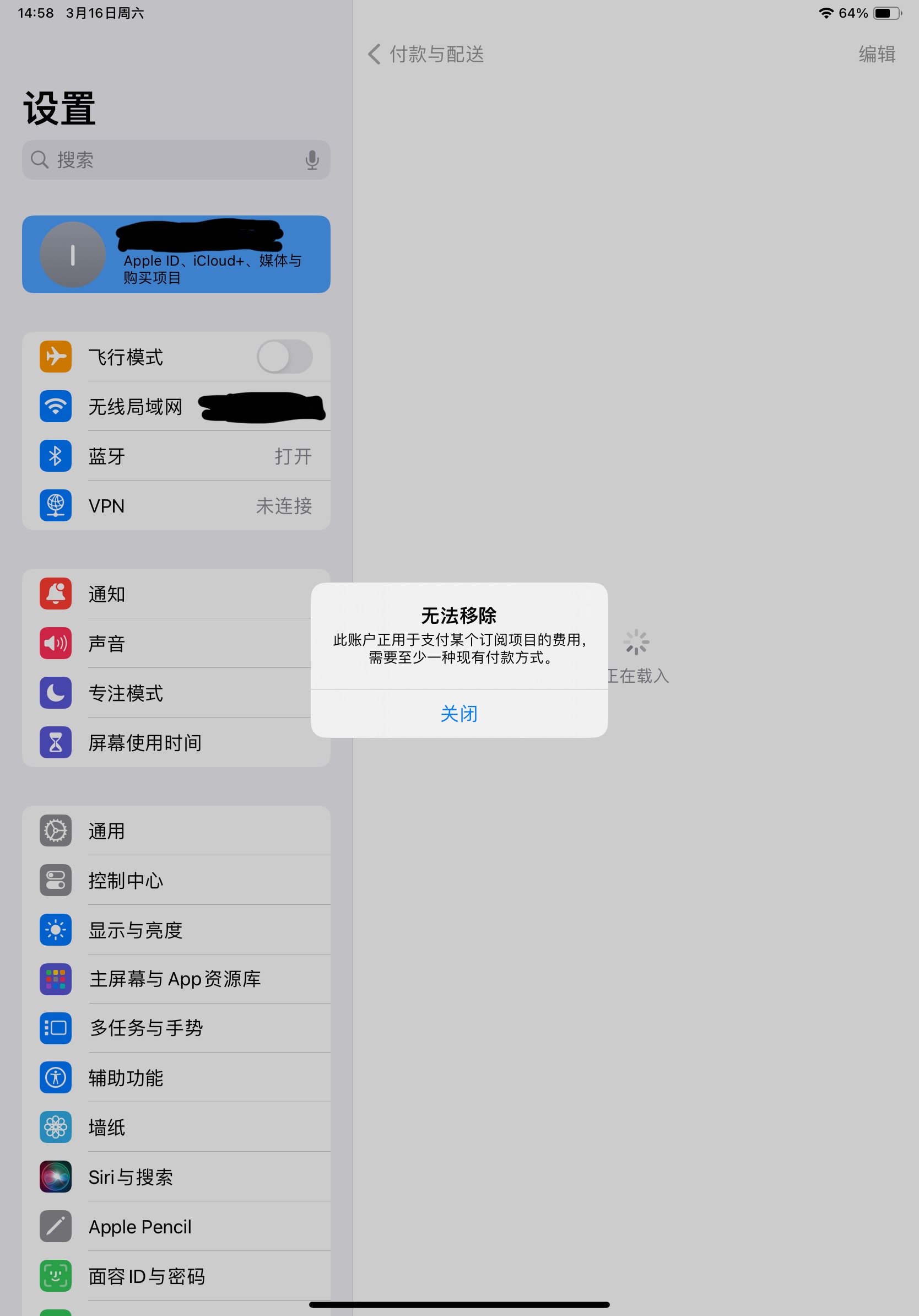 iPad中没有订阅内容却显示有,导致无法解绑支付方式