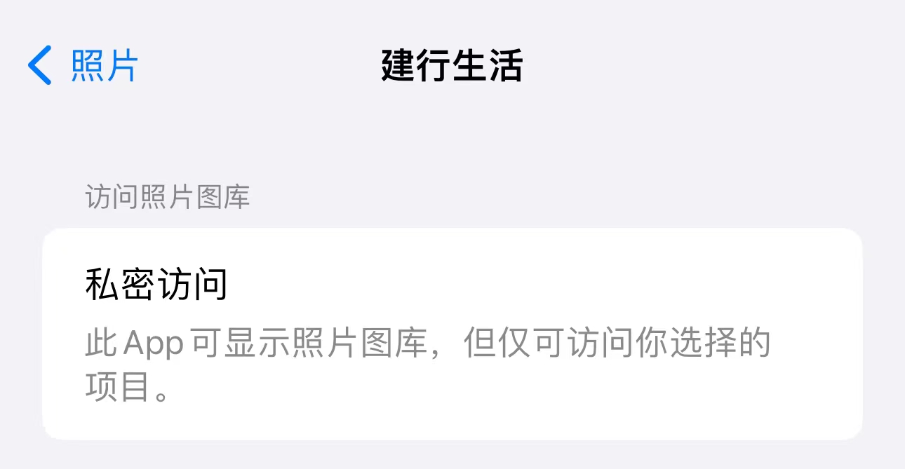 私密访问提示:此App可显示照片图库,但仅可访问你选择的项目。