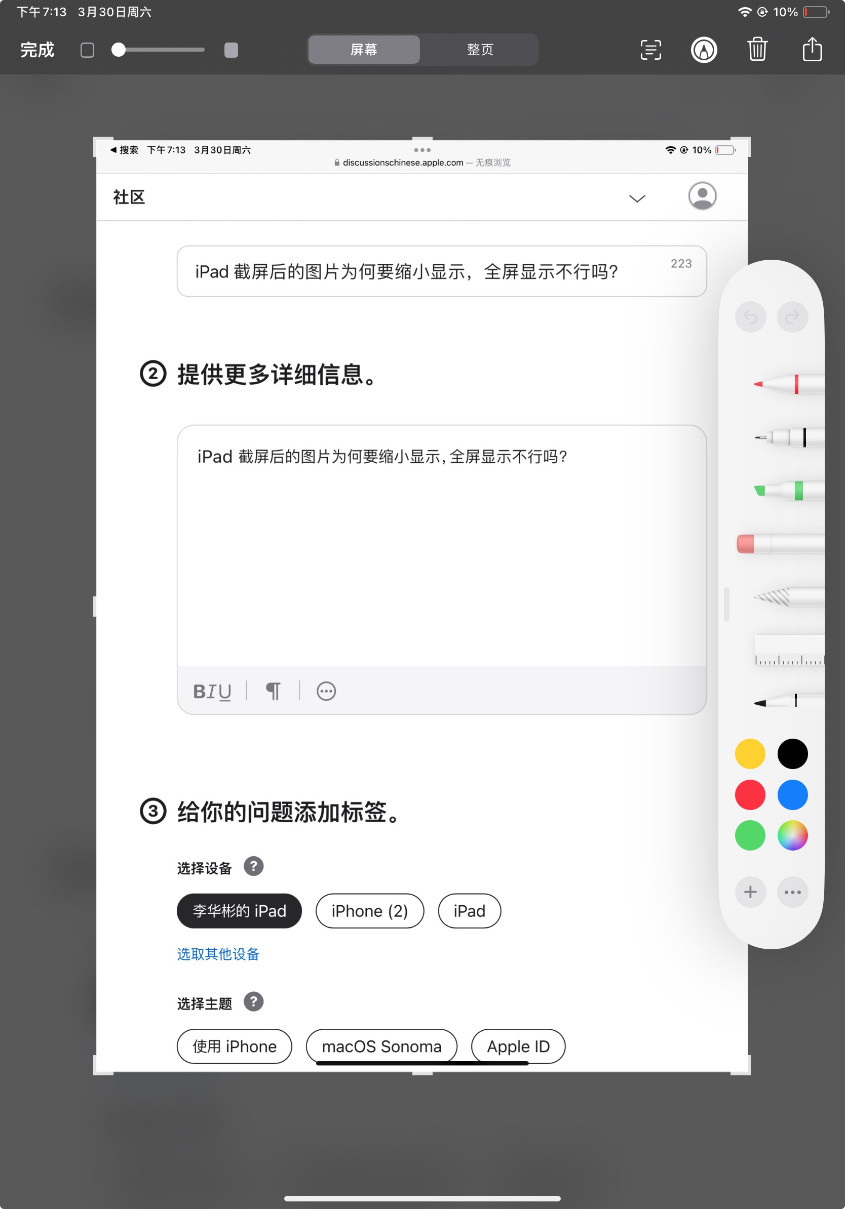 iPad 截屏后的图片为何要缩小显示,难道全屏显示很困难吗?!这样显示的图片就变小了,不便于涂鸦和书写!