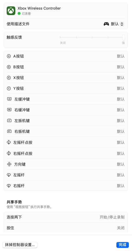 手柄可以连接正常使用,但是想改一下按键配置,找到这个地方之后,按键都是默认的且无法修改,这个要怎么操作一下才能更改?这个描述文件又是什么?