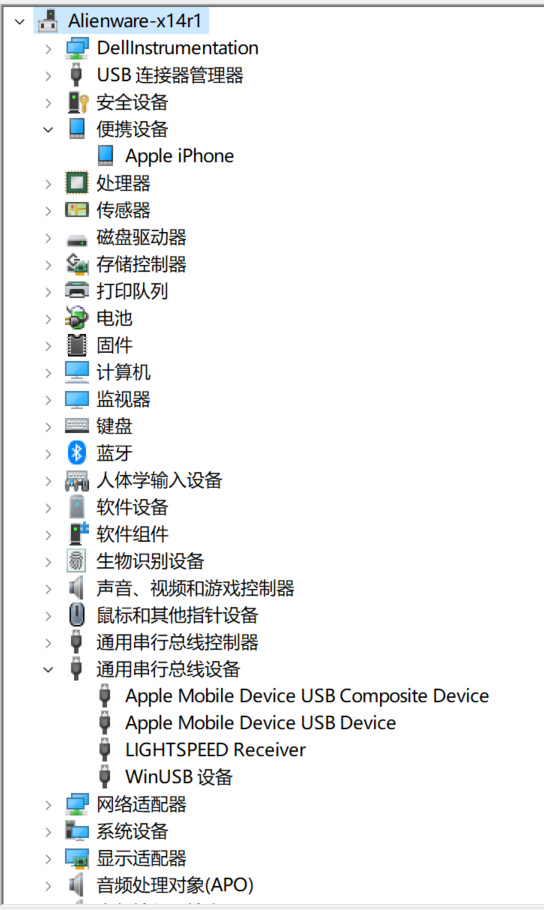 当你将设备连接到 Windows PC 时,“设备管理器”可以确认你的电脑是已连接到 iPhone 还是 iPad,并根据需要更新你的驱动程序。