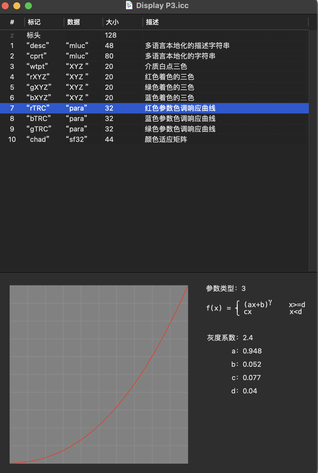 可以找到的信息显示,display p3 是使用 DCI P3的色域,D65 的白点,SRGB 一样的 gamma,也就是 2.2。