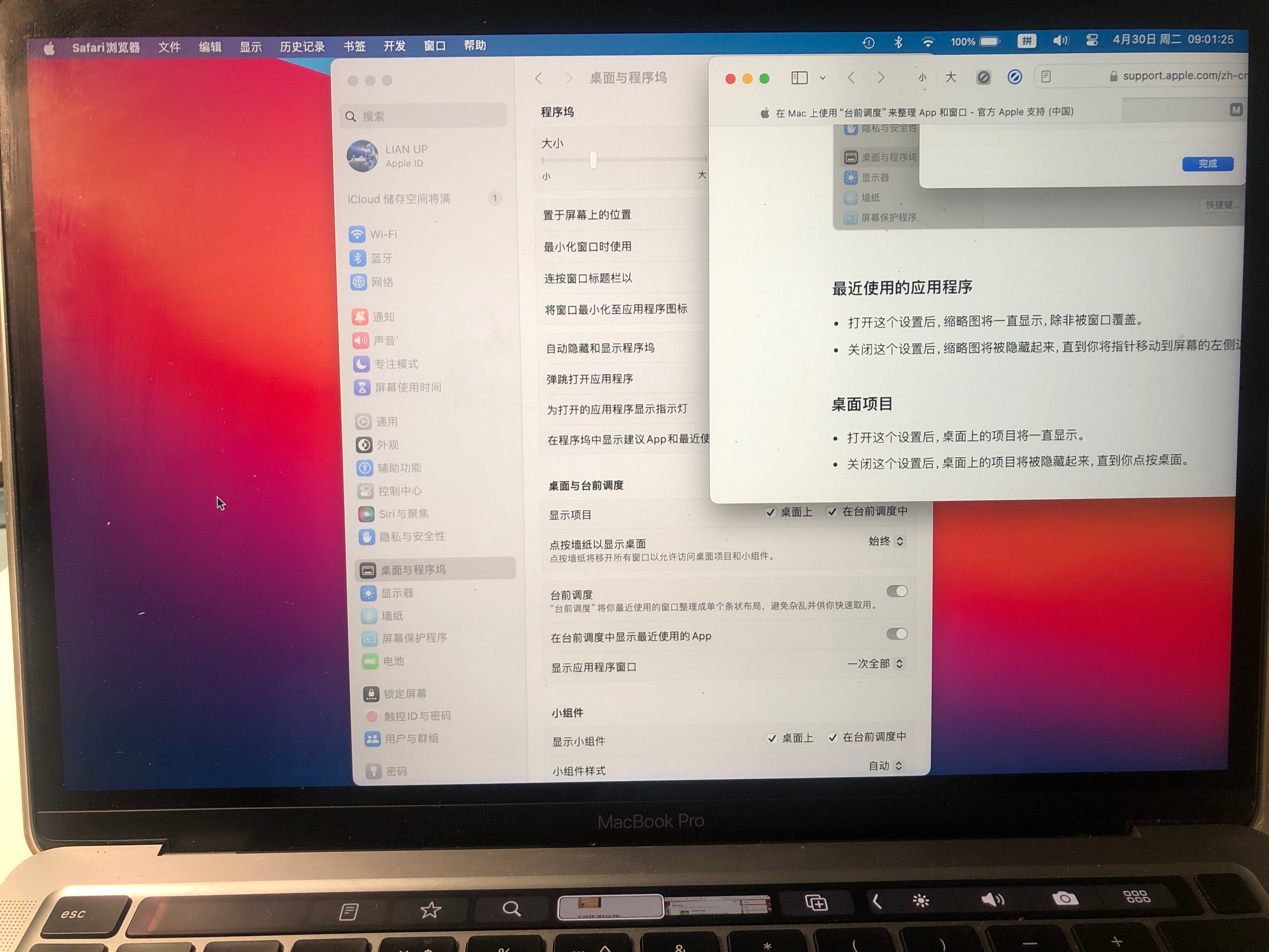 macOS 14.4.1 设置里打开了“在台前调度中显示最近使用的app”,但是没有效果,仍然自动隐藏了我打开的app。
