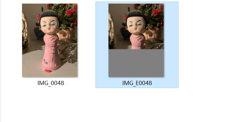 把iPhone的照片导入到Windows PC后,有出现两张内容一致的照片,一张照片文件名是正常的IMG开头,另外一张照片是IMG_E开头,并且这张照片通常只会显示上半部分,下半部分不显示。这张有问题的照片的下半部分会显示灰色。