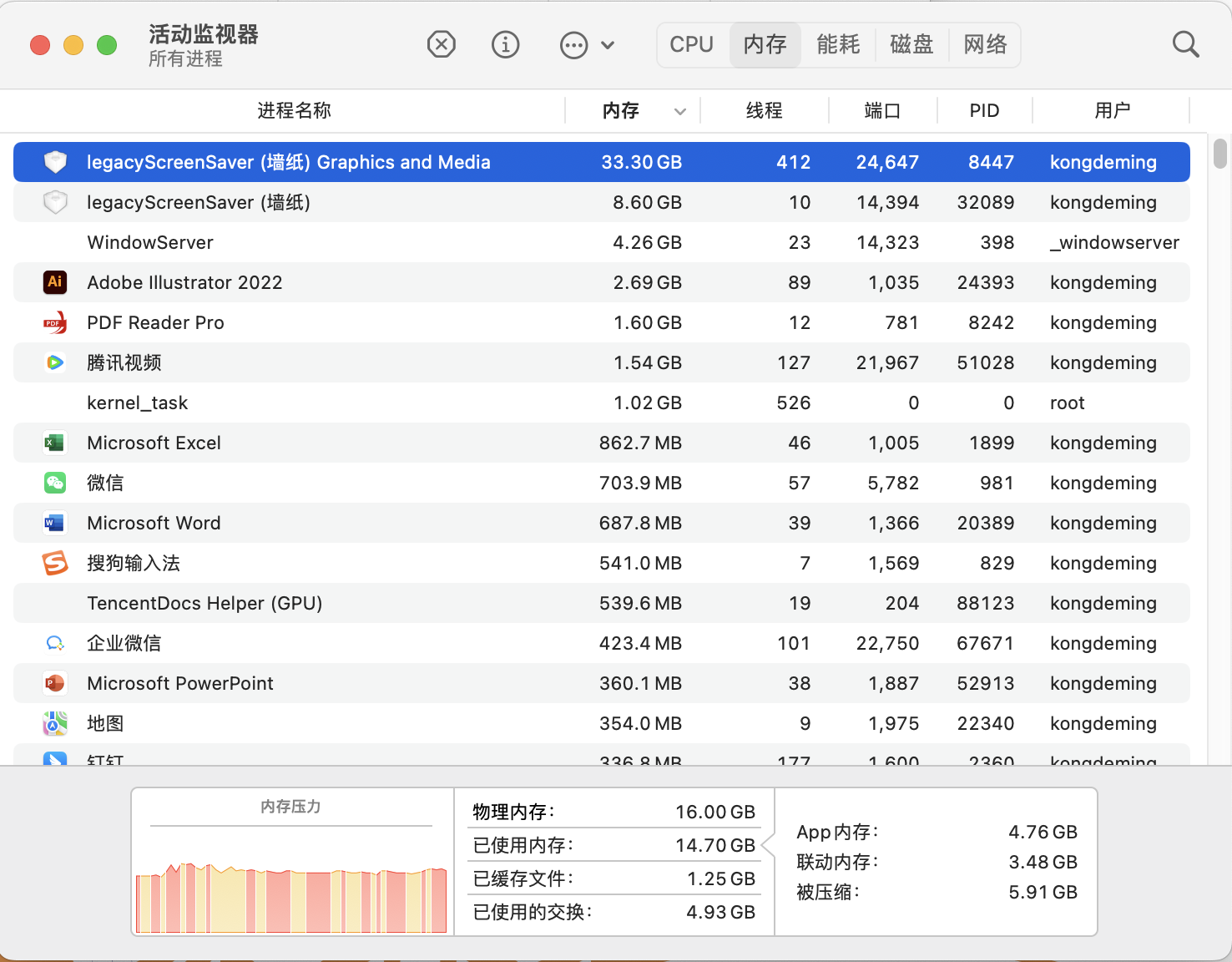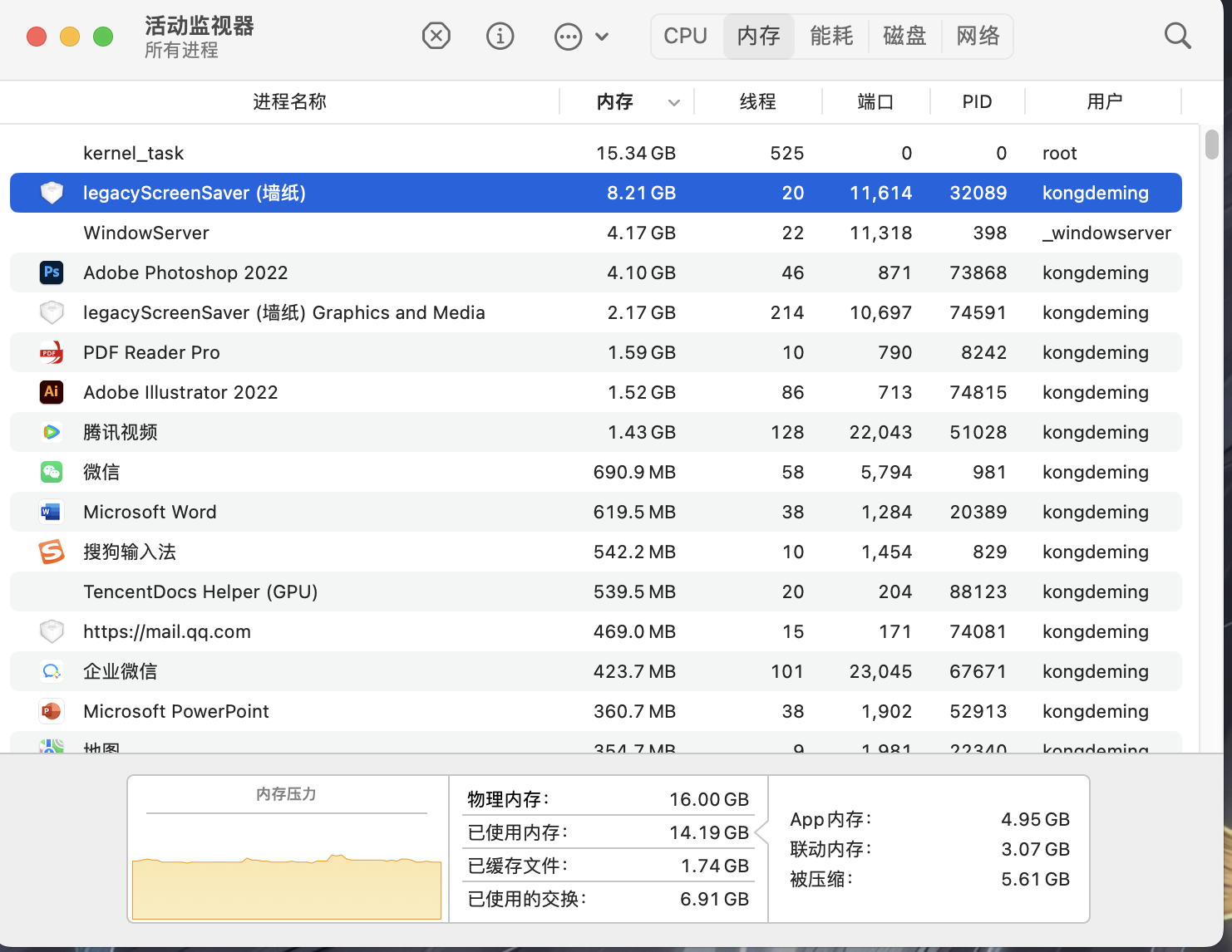 Mac 内存占用问题 墙纸的进程占用了 20 多 GB
