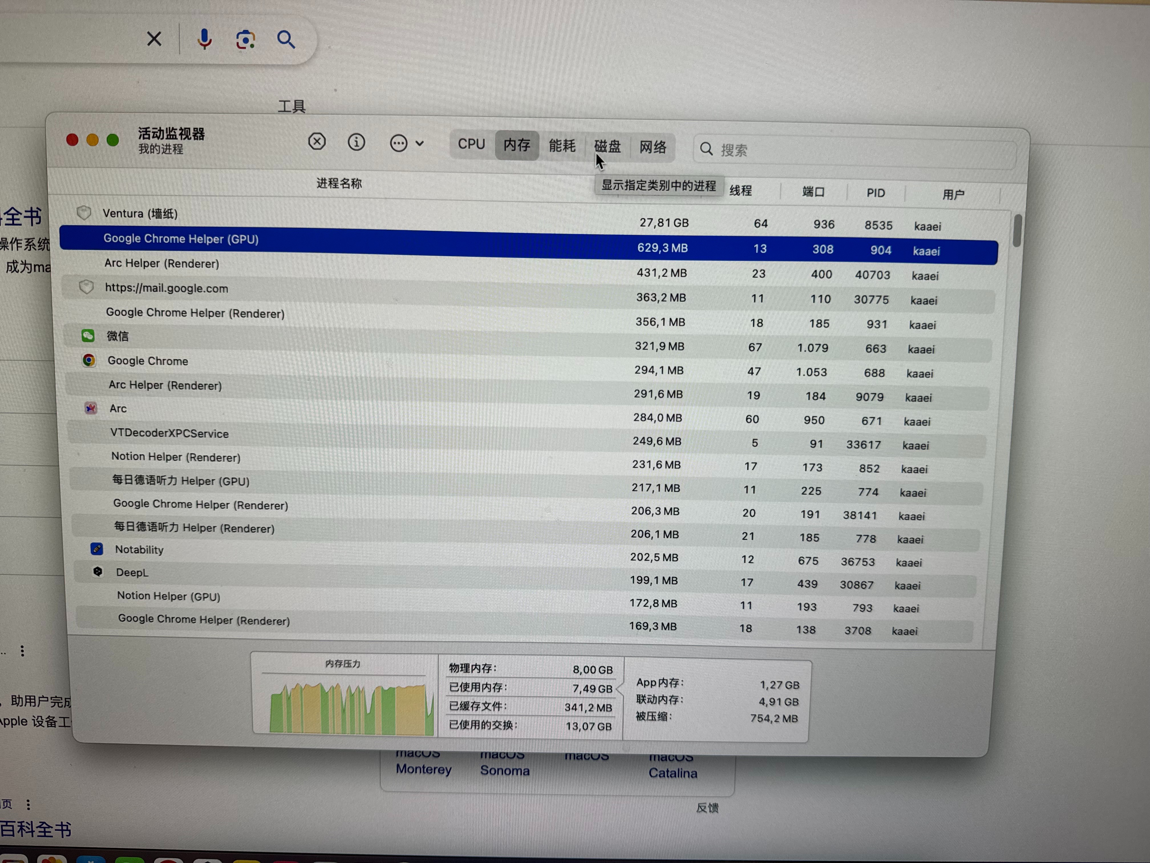 mac非常卡,打开活动监视器检查了一下,发现一个ventura墙纸的进程占用了20多g,这是怎么回事,我本以为这个进程是系统,后来问朋友看了他的电脑发现他没有这个进程。这是bug吗?目前我重新启动恢复了正常,但不知道以后还会不会出现这个问题。