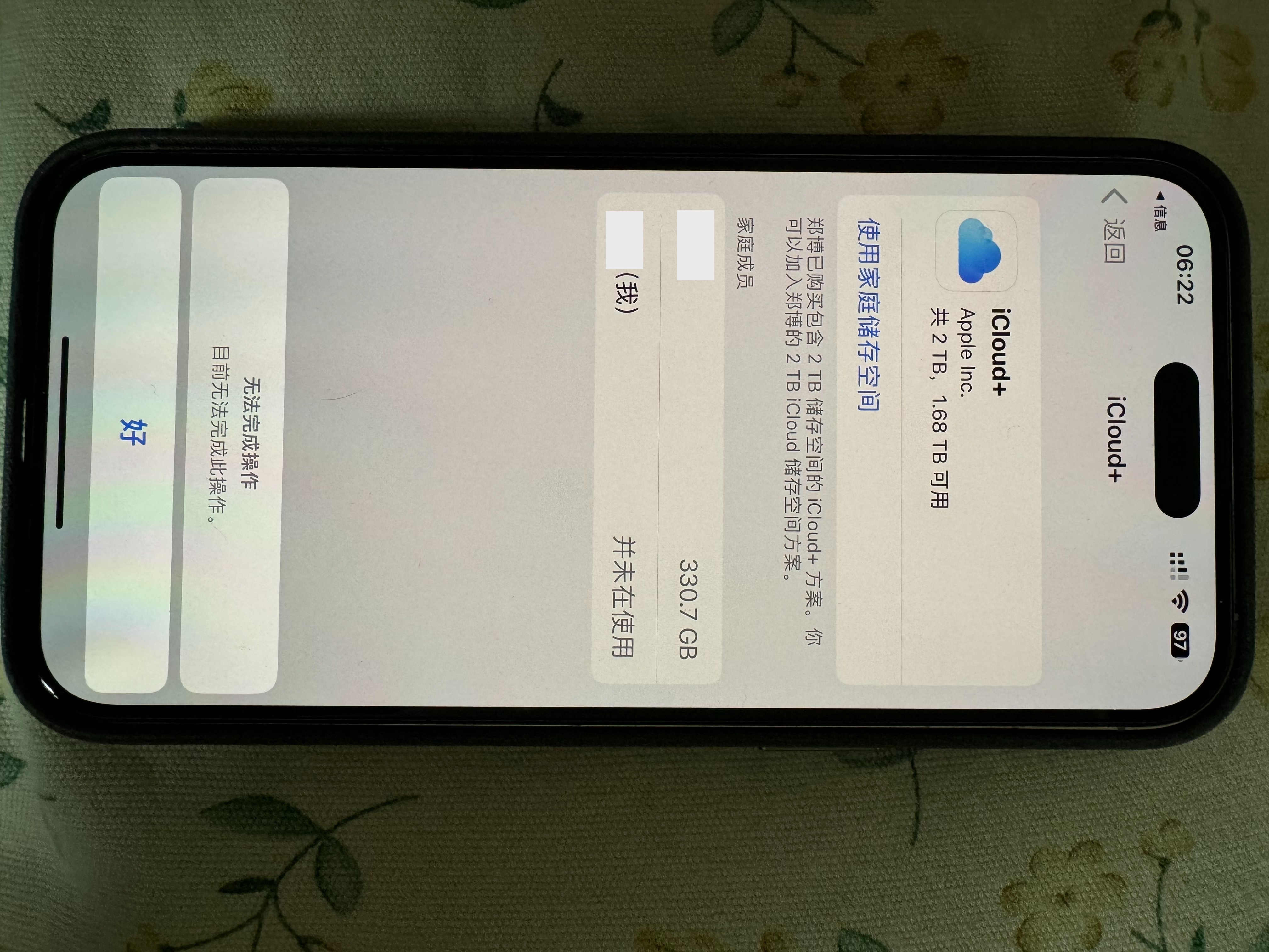 邀请家人加入家庭共享,对方加入后,使用家庭iCloud+提示无法操作