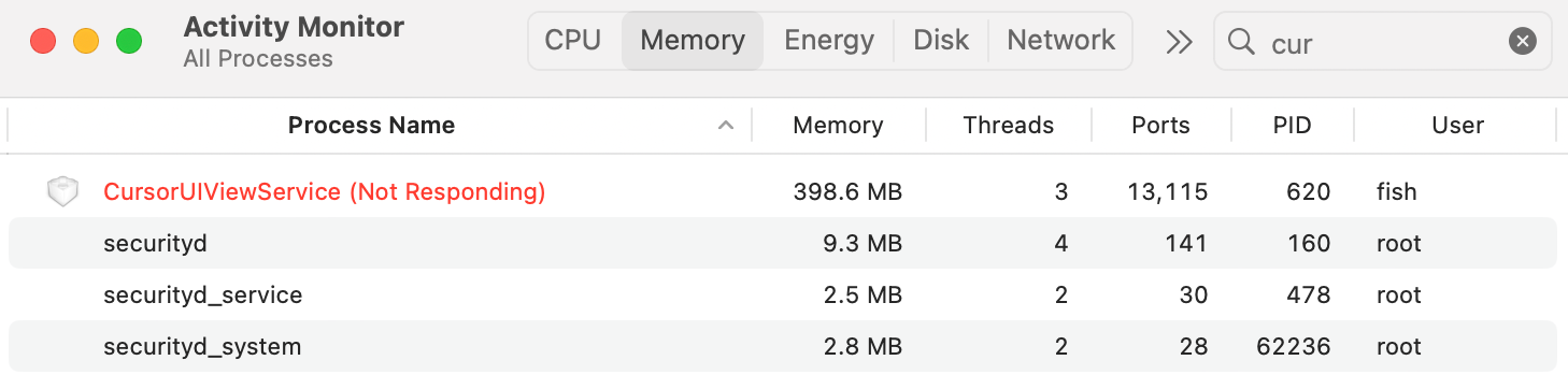 cursoruiviewservice 是显示新文本字段光标的进程。这是当您打开 Caps Lock 或当前输入语言指示器时出现的微小向上箭头图标。用户表示,此过程有时会消耗大量 CPU 和 RAM 内存并且变得无响应。当使用 Caps Lock 键或仅选中文本字段而不键入任何内容时,可能会发生这种情况。