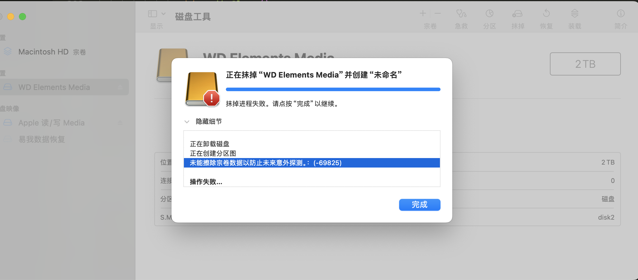 新的移动硬盘,在Mac上无法抹去数据操作,不知道怎么解决