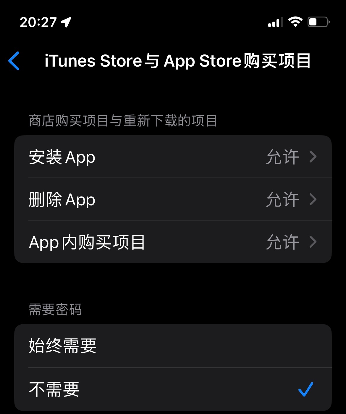 我的屏幕使用时间是这样设置的,与以前一样。现在【安装App】允许和不允许切换,Appstore闪一下就不见了