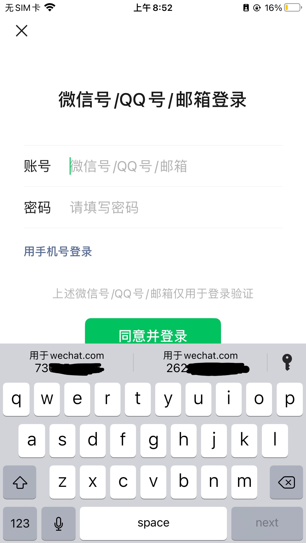 iPhone 微信卸载重新下载之后,再登录就没有自动填充账号和密码的提示了