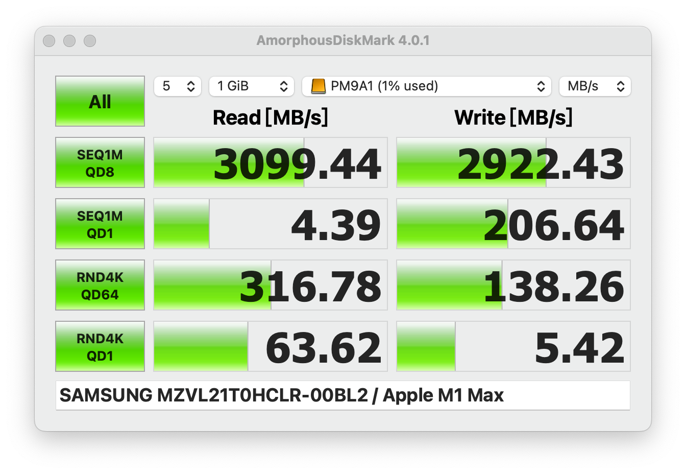 硬盘是PM9A1,硬盘盒分别测试了JHL7440和ASM2464主控的,线也换了好几根,都是同样的读速异常。外置NTFS机械硬盘播放都不卡的素材,放在硬盘盒里就卡死。其他指标以及硬盘盒在win系统的测试性能都基本正常