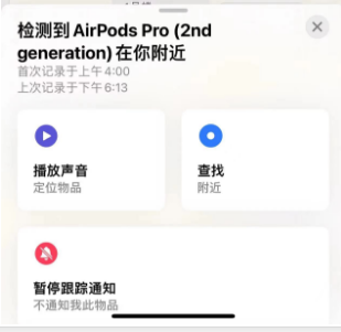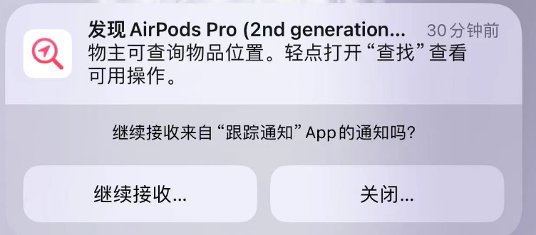 这几天,我的iPhone 15 Pro Max,总是提示:发现AirPods Pro(2nd generation... 30分钟前物主可查询物品位置。轻点打开“查找”查看可用操作。