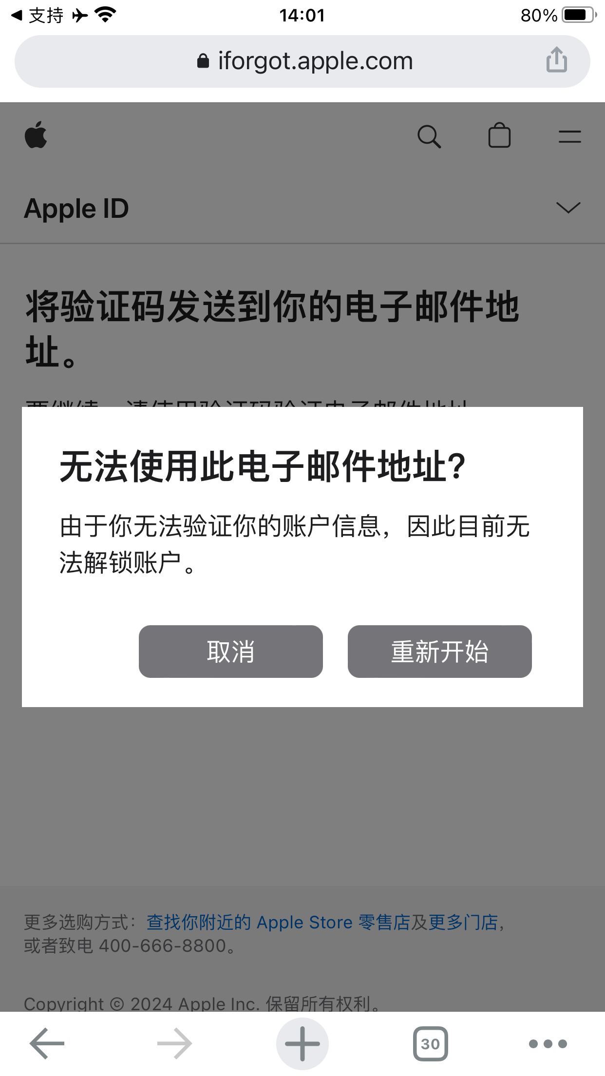 提示Apple Id出于安全原因,已锁定。海外手机号码已停用无法接受验证码,绑定的邮箱也被运营商收回无法接受验证码。因此无法解锁账户。陷入死循环。