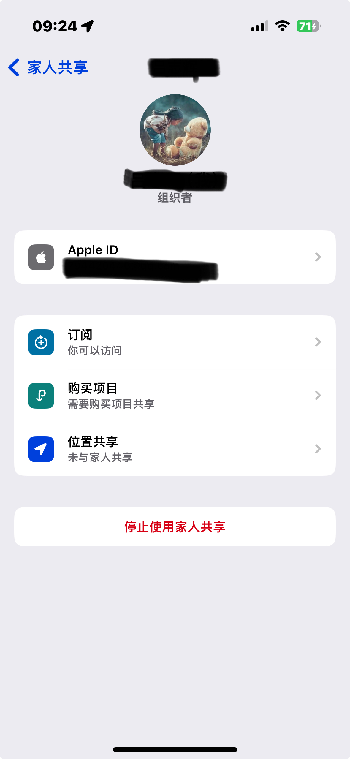 问题如下:在“家人共享”中点按“停止使用家人共享”无任何反应。求助处理方法