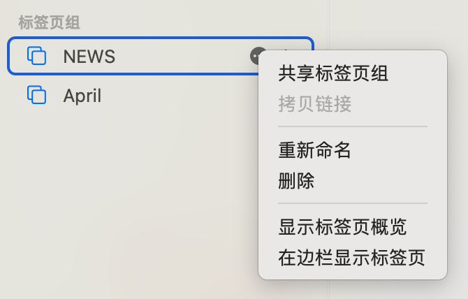 我在mac上打开Safari,打开边栏-标签页组,鼠标移动到想删除的标签页组,出现标红圈的符号之后单击就出现“删除”选项了。也是折腾好久突然摸索到的。