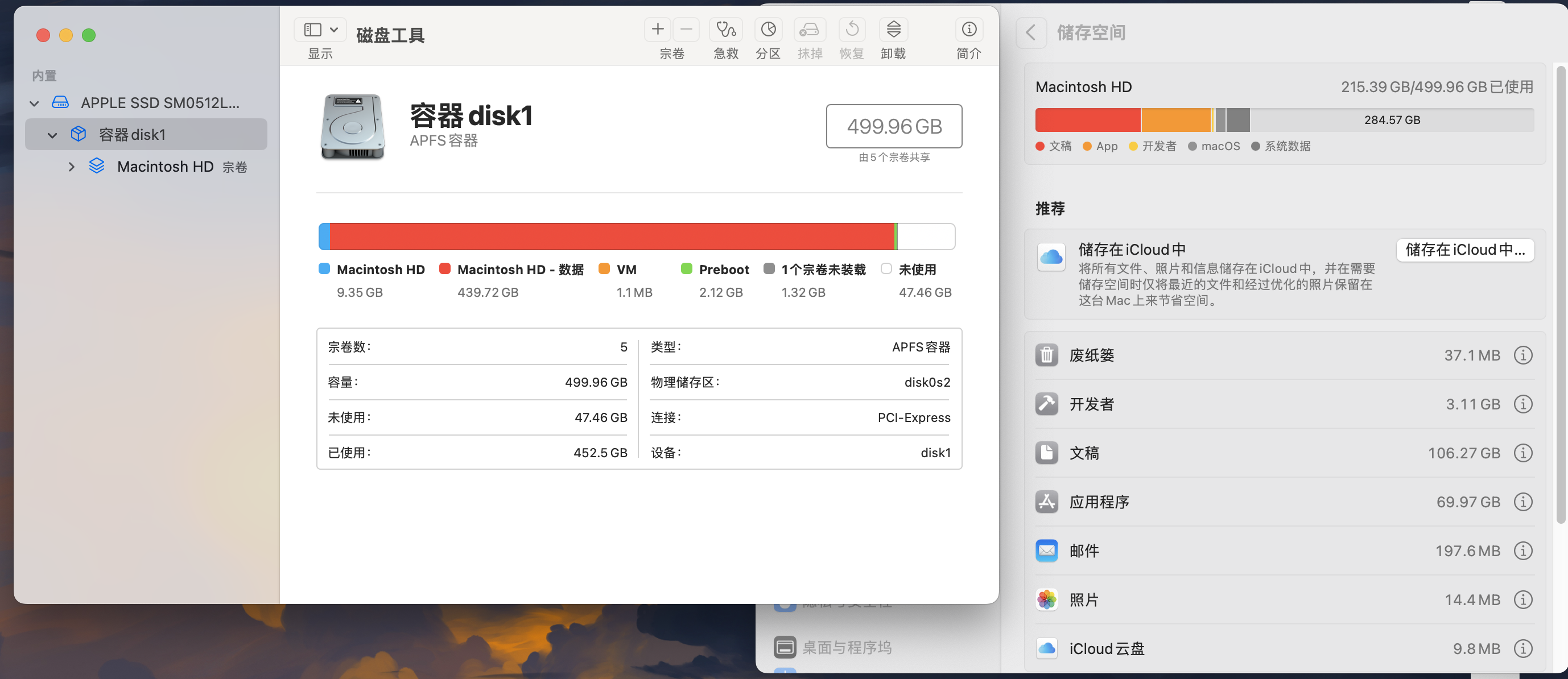还有一种情况,比如打开了时间机器或者APFS的本地备份打开了,也会影响存储空间的释放。如果是时间机器,而备份盘没有联机,它会保存在本地,直到备份盘链接后,才会把数据复制到备份盘上,之后把本地的快照数据删除,从而释放空间。如果是本地备份打开了,那么本地快照的原因,快照会在24小时后自动失效,然后释放空间。