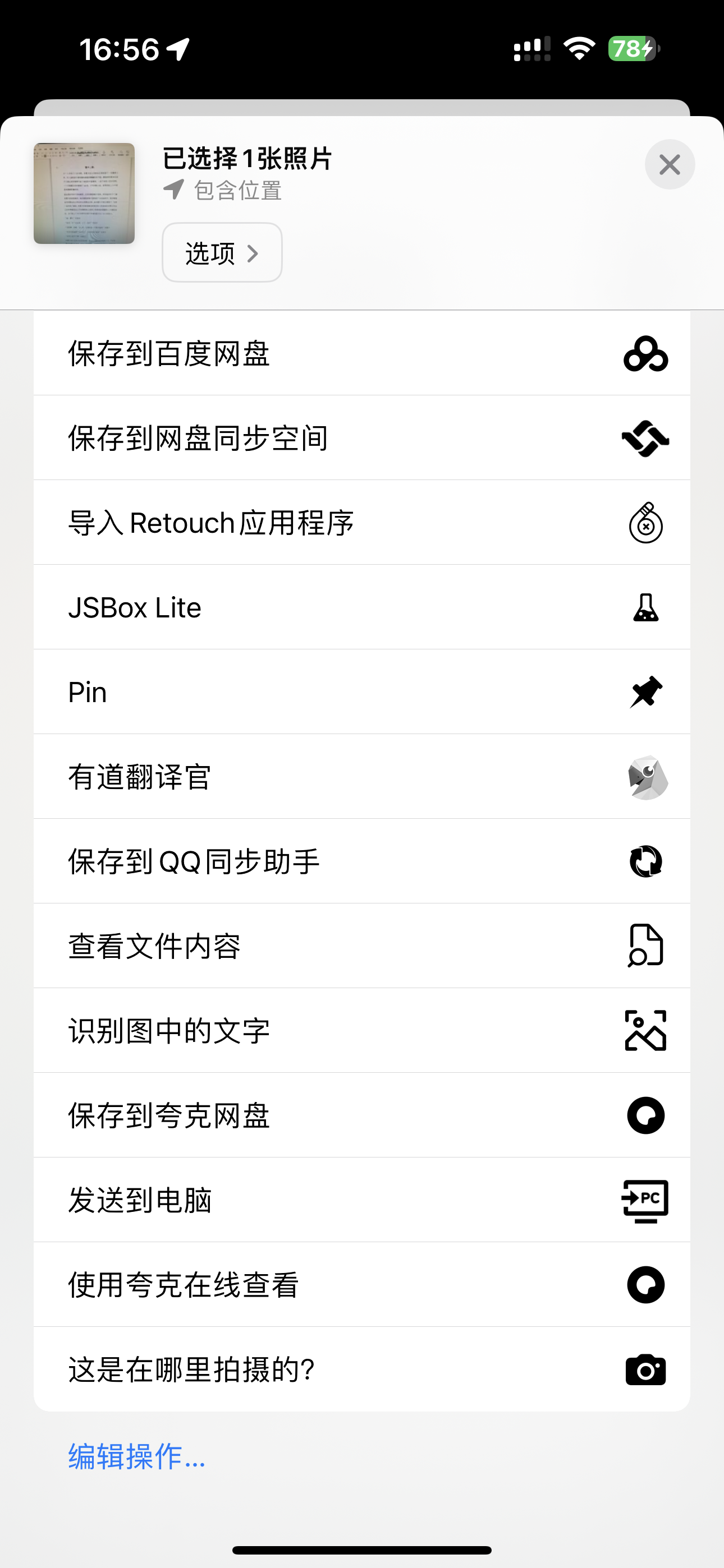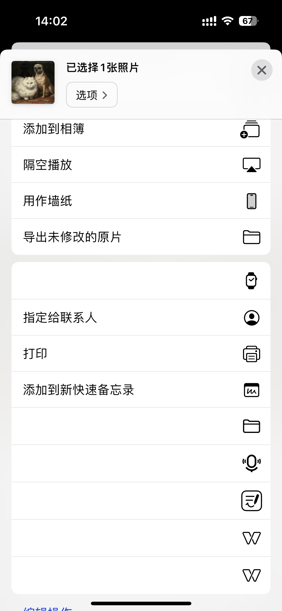 iOS17.6.1 iPhone 14 pro 照片内分享功能,无法显示所有“其他”功能里面的文字显示,但是在“编辑操作”里可以正常显示文本内容。