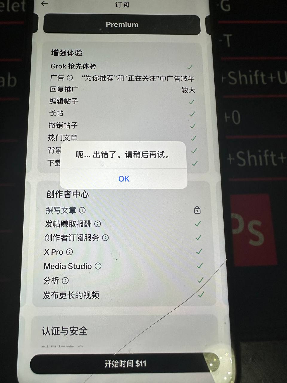 app内购买显示如下 显示 呃 出错了 请稍后再试 是什么原因呢