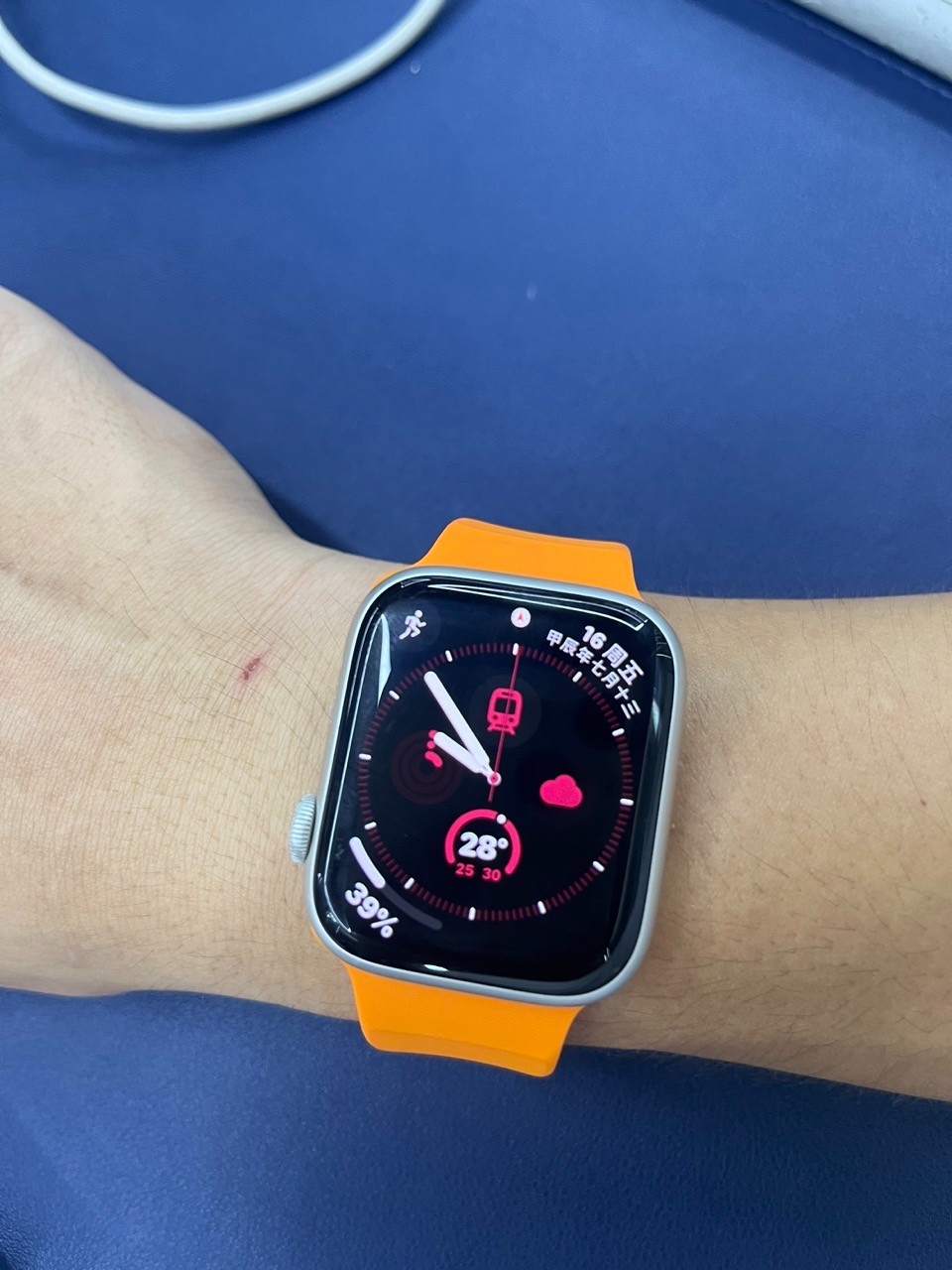 静置一段时间后熄屏,但是是指南针软件的界面,并且上方浮动着熄屏时显示的时间。看起来就像我刚刚使用了指南针软件然后放下手腕之后的样子。但实际上我从头到尾都没有打开过指南针。