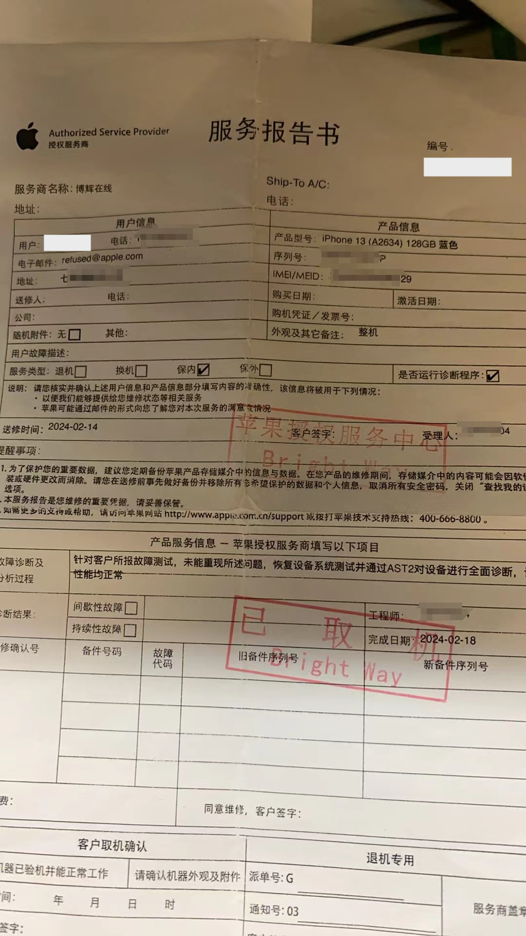 那个电话并没有提及到什么未说明的原因,只是问了手机有没有拆修过和坏的具体情况,当时就说了手机突然坏了后拿到路上的手机店里借了一个充电器按照京东客服说的对手机进行了按键操作但是并没有恢复,就走了京东保修。他们并没有告知我什么未发现的问题只说手机要退回来然后后面再看。这台手机于今年2月分在京东自营apple旗舰店铺购买,当时在激活的时候出现过在人脸3d认证后跳转到前面几个步骤然后死循环的情况,我之前购买用到现在的11激活时并没有这样的情况。于是当时就申请了换手机。该手机也在2024-02-18日送回去检修了。但是后续又正常了,这次由于拖了我一个多星期的时间,让我来不及退换手机我就将就着用了。我不知道是不是他们的人员把这次检修当成我们自己未提及的拆修了。