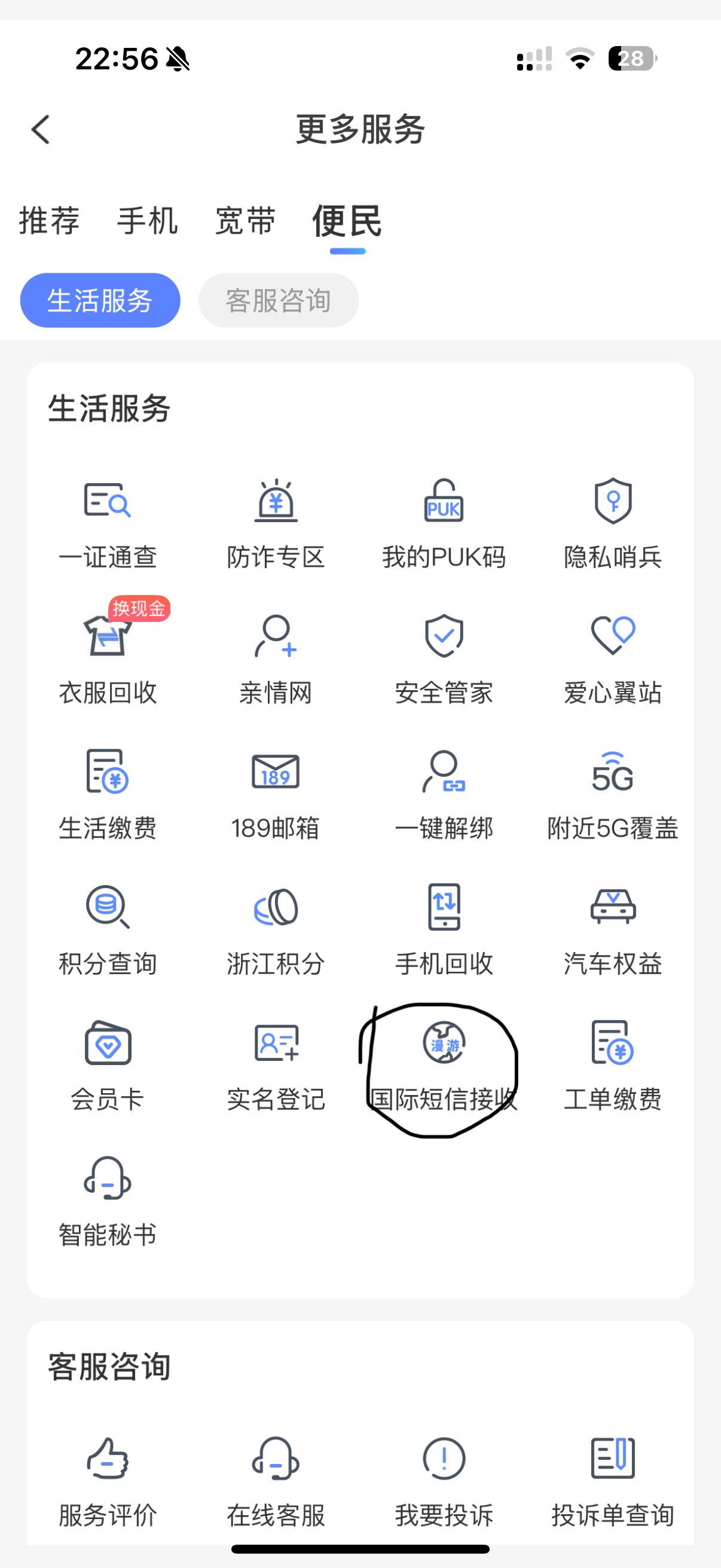上图位置找到国际短信接收,点进去开通
