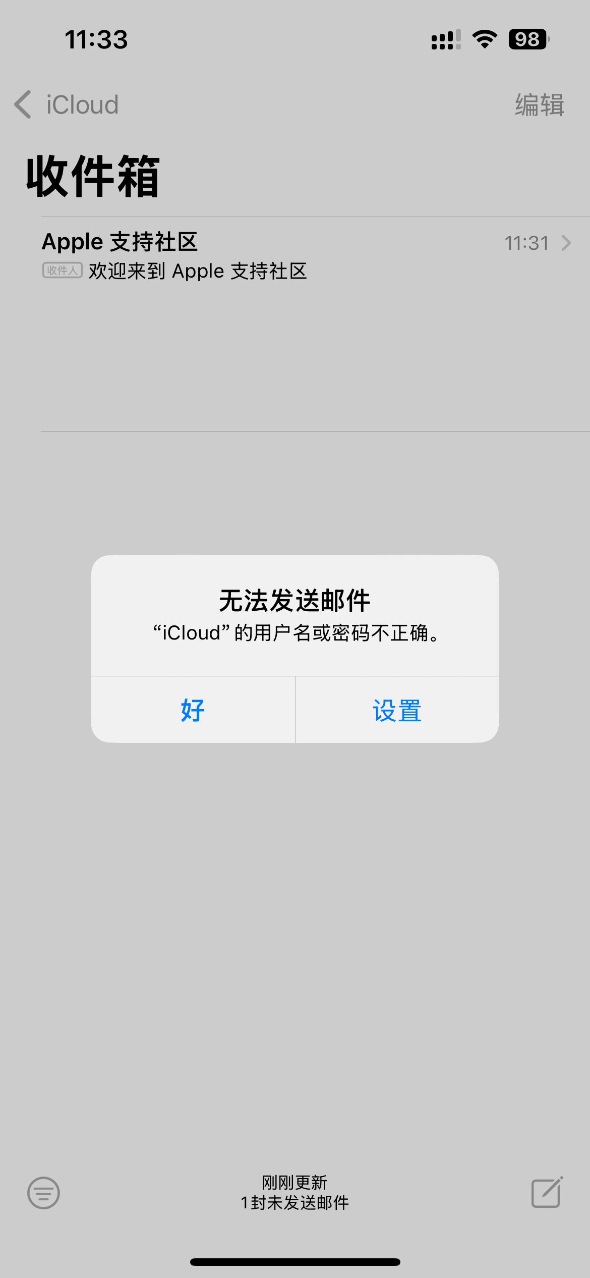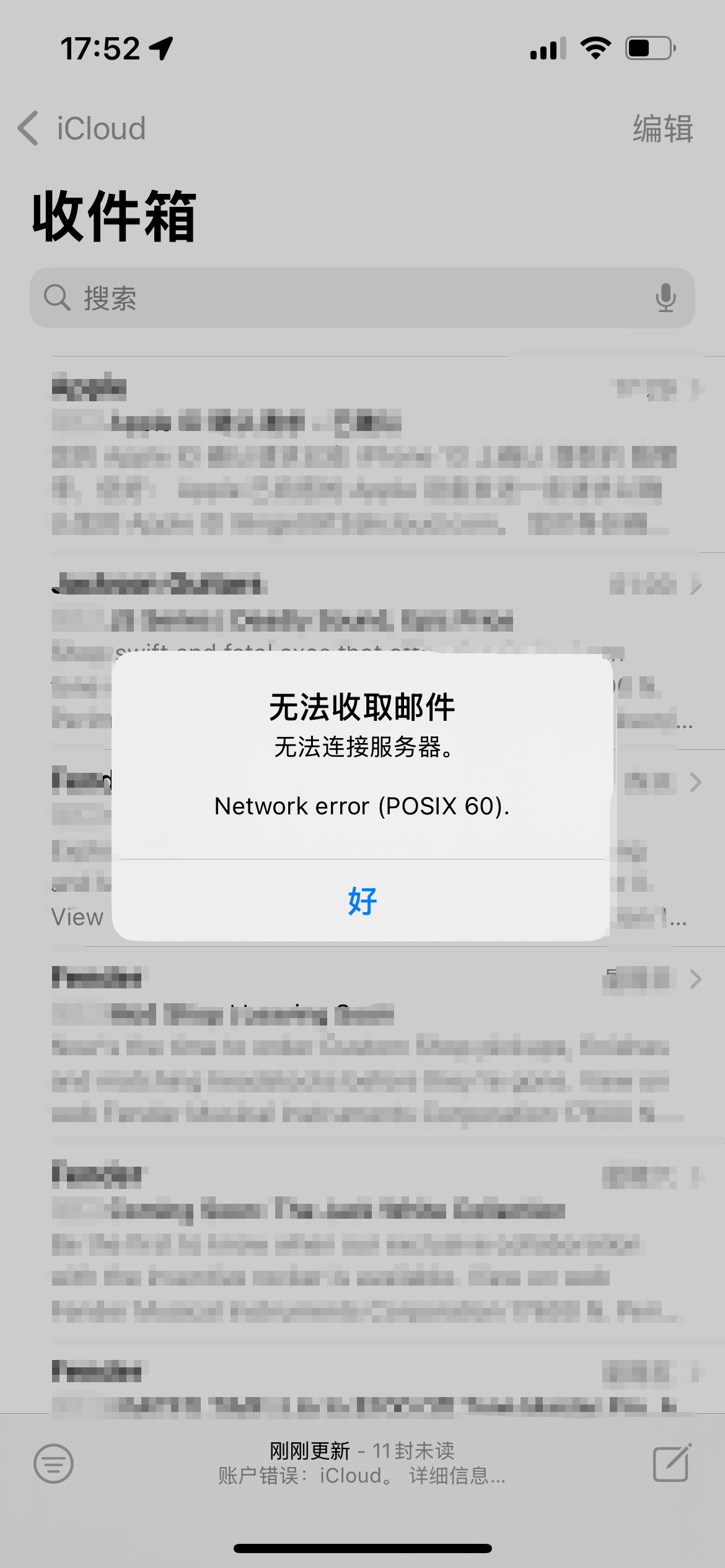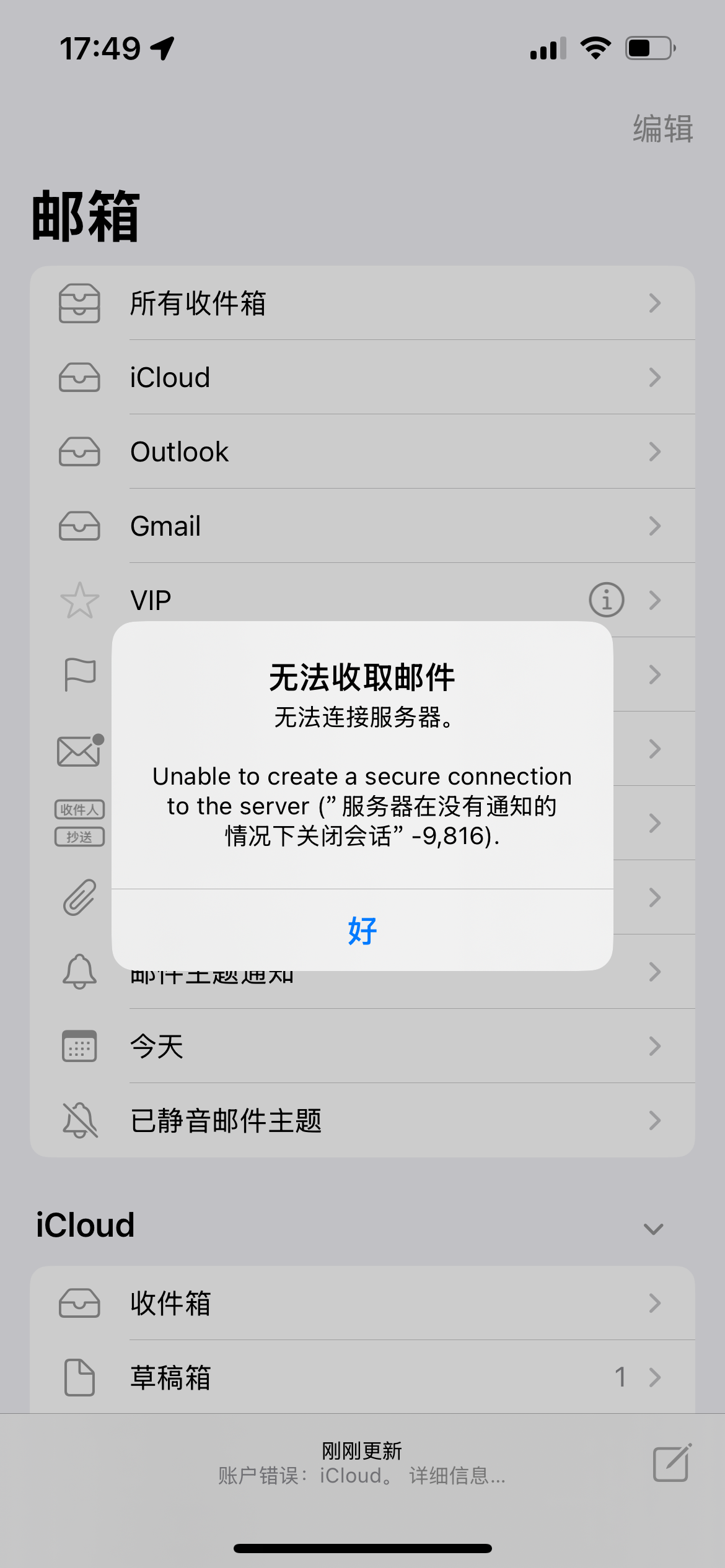 iPhone 13 iCloud邮件报错“服务器在没有通知的情况下关闭会话”
