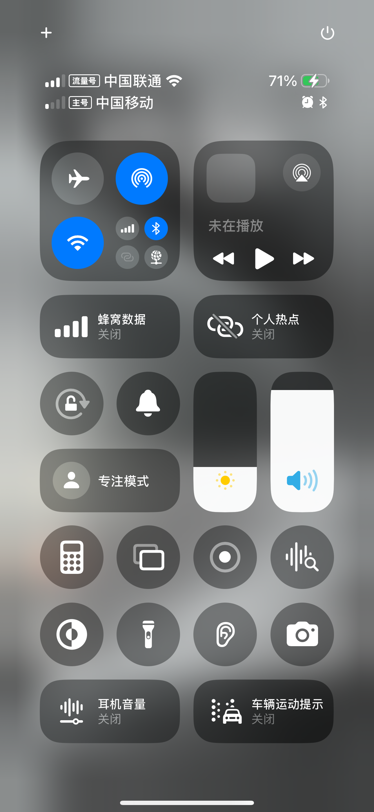 iPhone 更新至iOS 18.0,右边向下滑屏的小组件问题:无线局域网功能不能单独设置