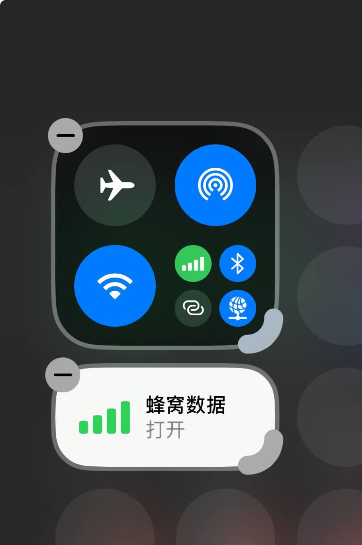 以下用户的用户个人资料: 消身匿己 消身匿己 用户级别: 级别 4 1,187 积分 2024年9月19日 上午7:31 回应 Karmylr2 你可以添加单独的蜂窝数据控制按钮,像这样。也算是曲线救国吧。 回复 链接