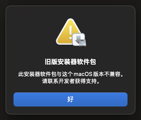 升级15后,曾经的软件包提示:旧版安装器软件包 此安装器软件包与这个macOS版本不兼容。请联系开发者获得支持。要如何解决?