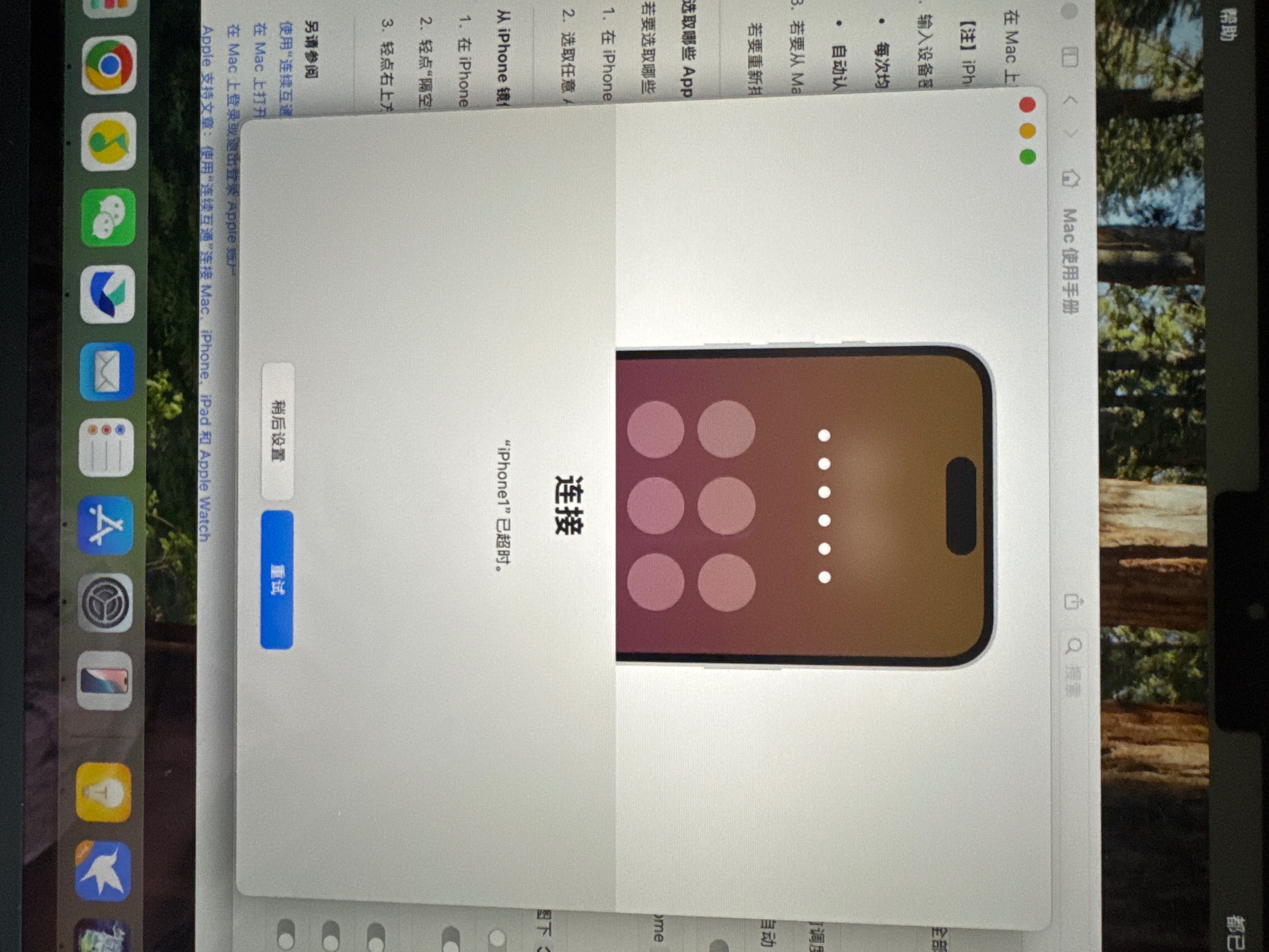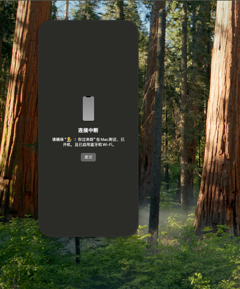 在 MacBook 上使用 iPhone 镜像 提示 无法连接 iPhone
