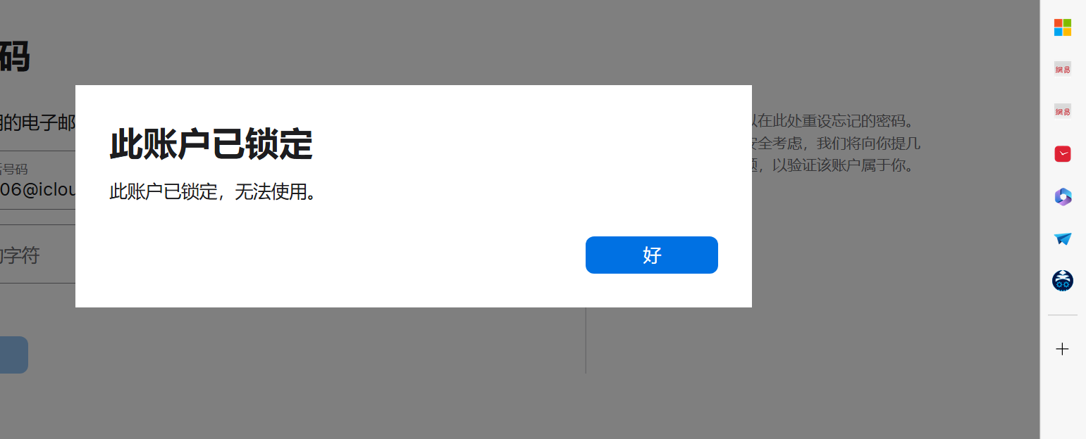 我用自己的姓名注册邮箱来作为账户id,不知道是多年未用或者其他原因,导致我的账号锁定,无法使用,也不能重置密码。很是苦恼。打官方客服技术支持两次,都没能解决,都是发一条邮件过来,叫我提交申请,每次输入邮箱账号,点击继续,就提示账号锁定,无法使用。根本不能继续操作下去,更不用说重置密码