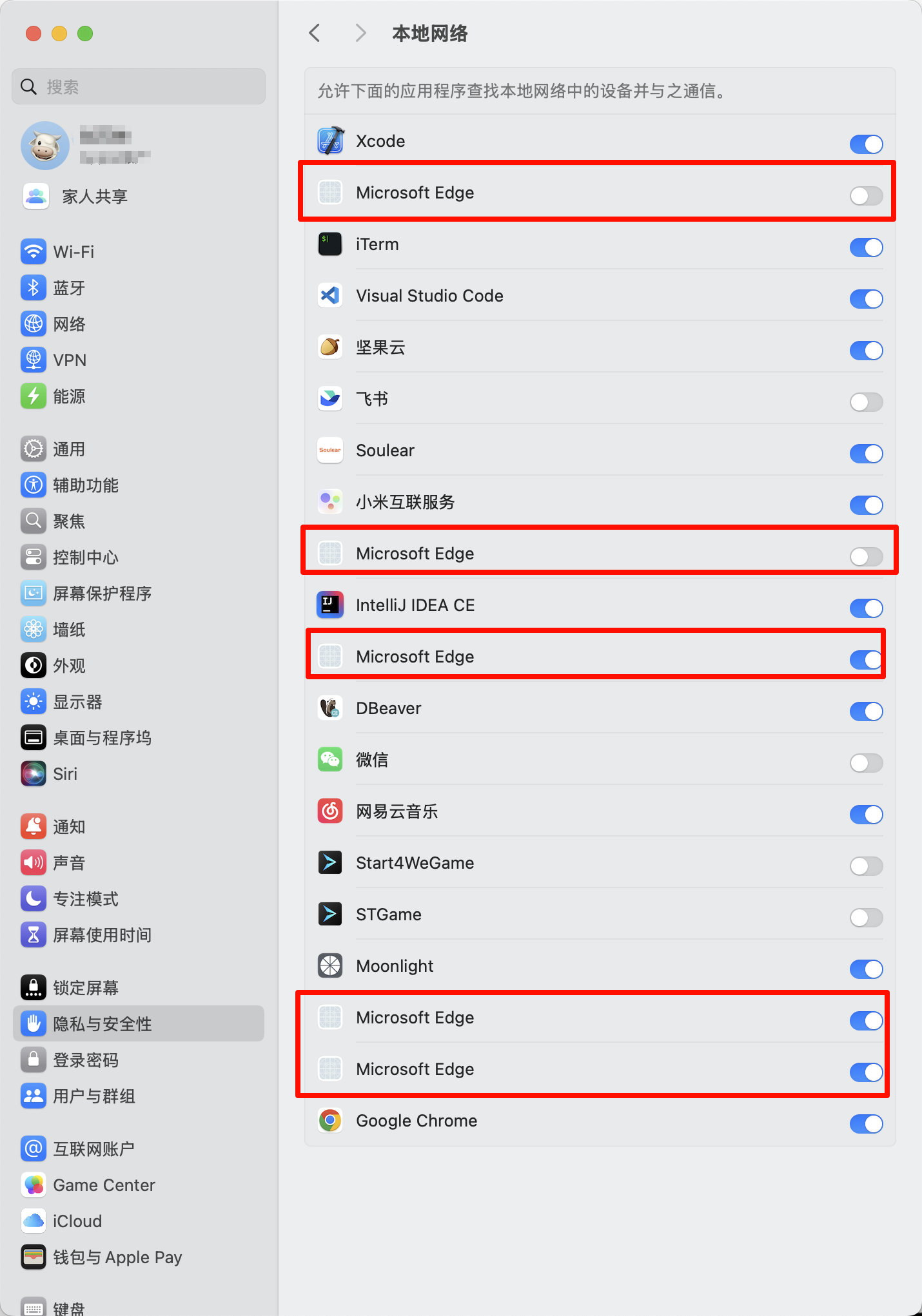 在macOS15中,已卸载了app(比如Microsoft Edge),意外发现,在设置-隐私与安全性-本地网络中,还留有这个已经卸载的app的名字,不知道应该在哪里将它删除,清理。在这个界面中,macOS15 没有提供手动删除的选项。