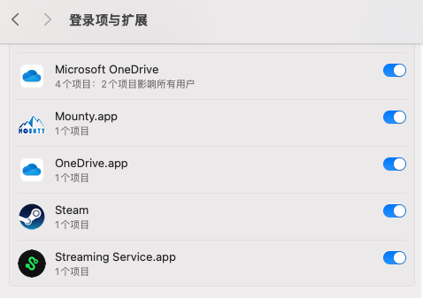 看了下“登陆项与扩展➡️允许在后台”也有一样的问题