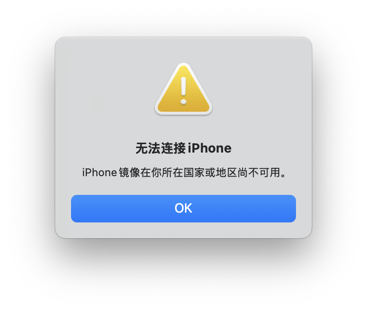 我的手机和电脑都是 中国 购买的,目前在 德国 ,使用 iPhone 镜像提示无法使用。