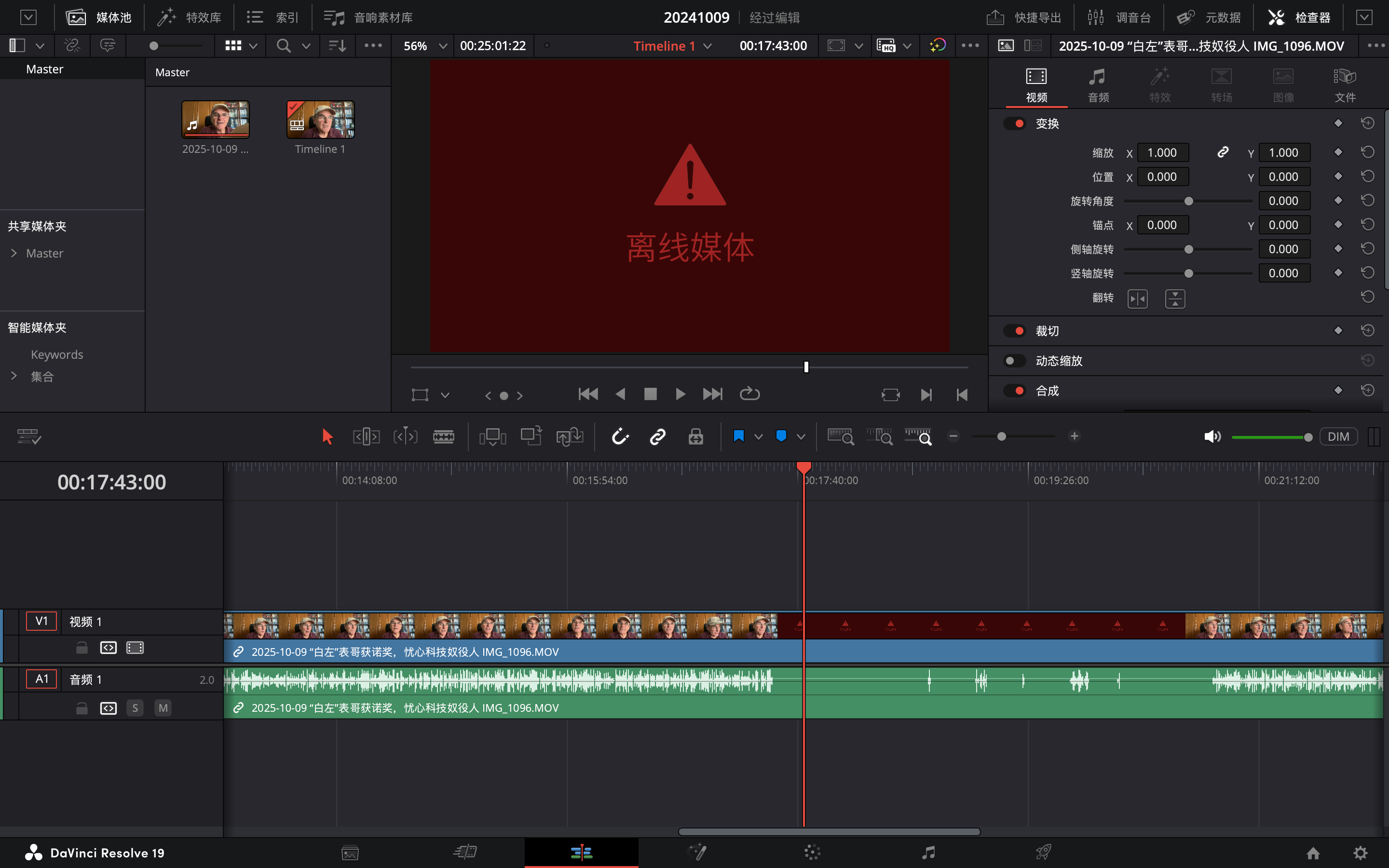 MacBook Pro M2版从百度网盘下载下来视频素材有卡顿,导入达芬奇部分片段出现离线素材