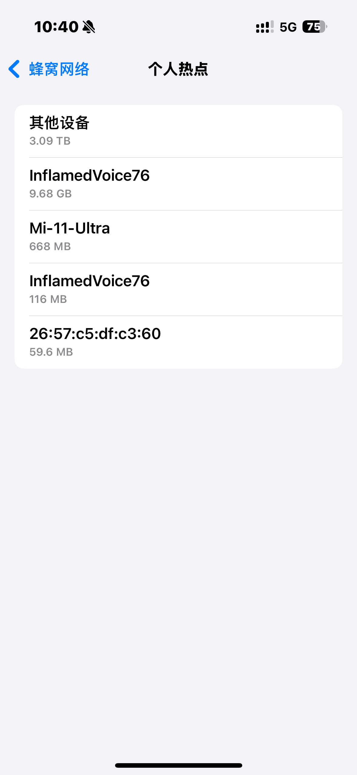 蜂窝数据里个人热点一直莫名多出来其他设备大量流量使用