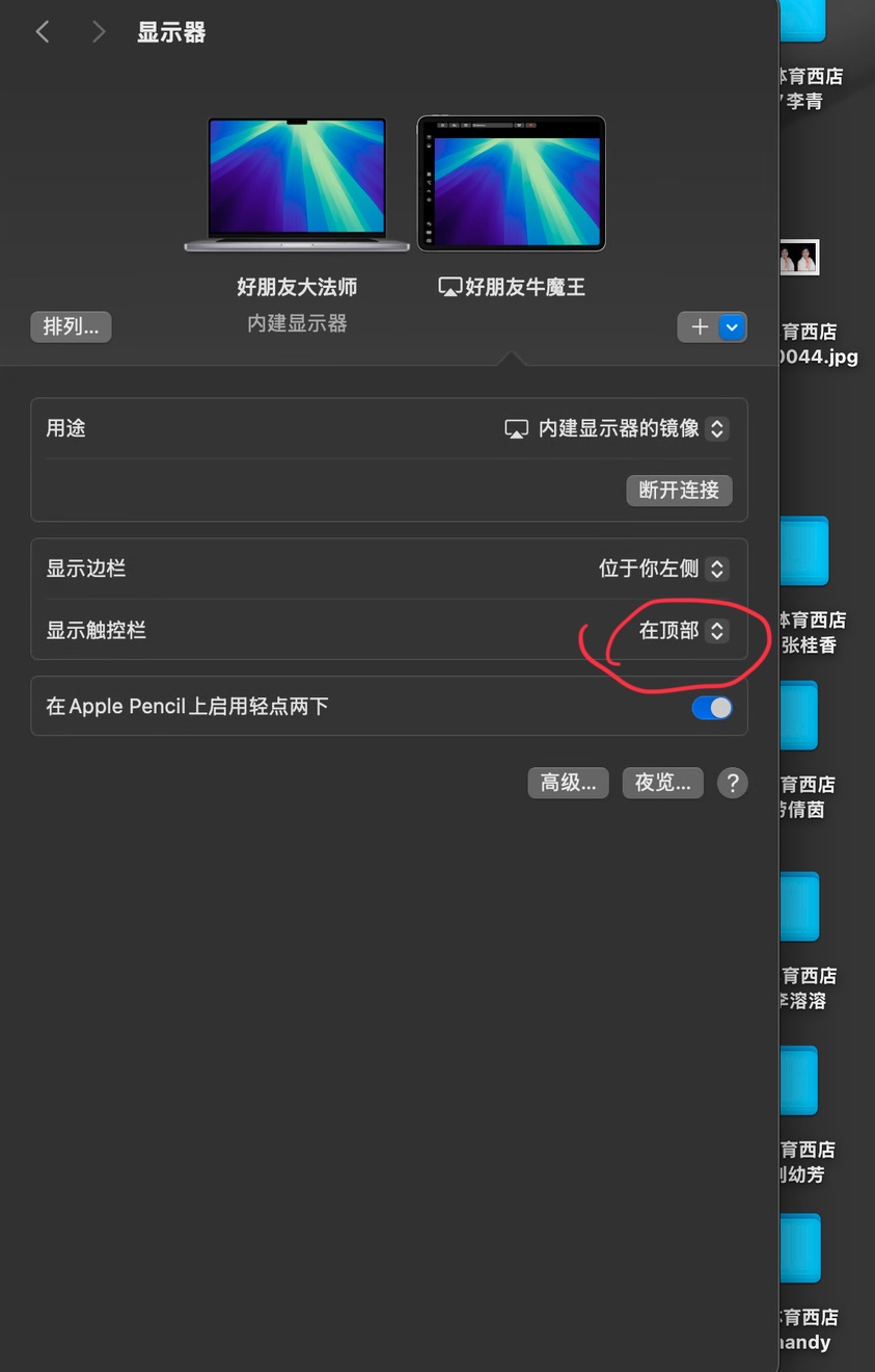 在mac端愿选择设置 显示器 选择ipad屏幕 底下显示触控栏 任意切换一个模式 结束后再回到iPad 就能完美解决问题