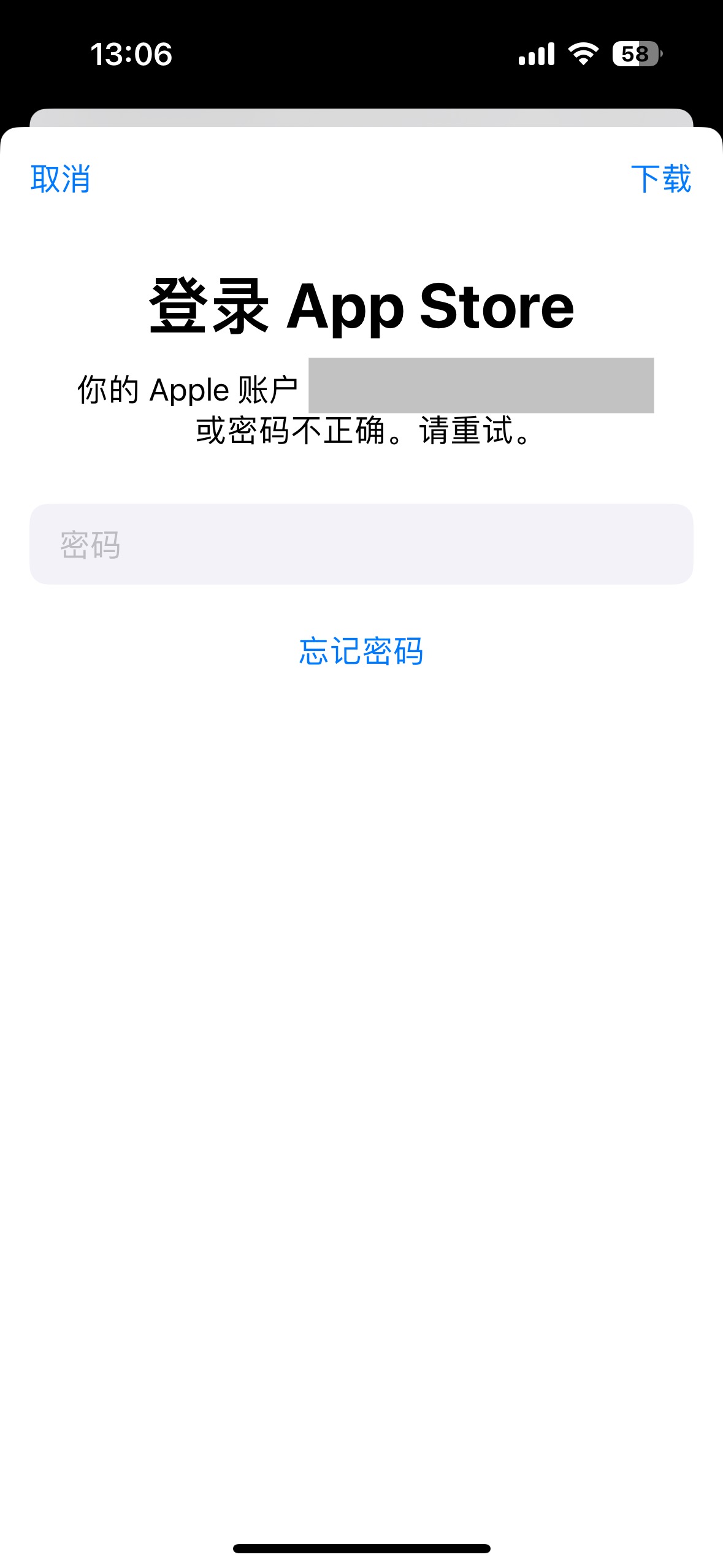 今天想在appstore上更新几款软件,其出现了密码不正确提示