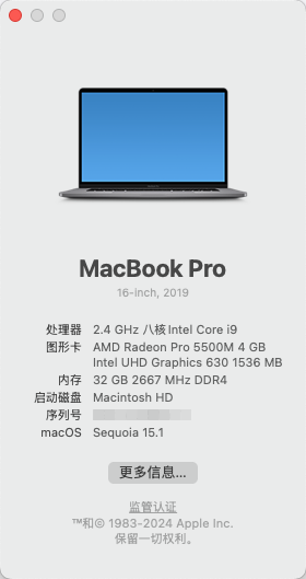 硬件配置一样,os目前版本为Macos sequoia 15.0.1;
