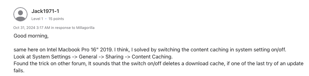 按照这个方式 系统设置->通用->内容共享,开启再关闭; 系统更新(至macos sequoia15.1)还是搞不定啊。