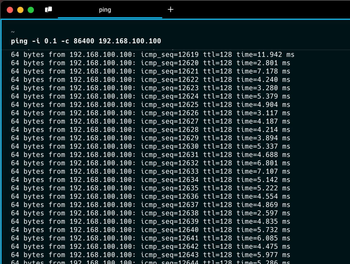 场景:一台MacBook Pro (M1),旁边一台iPad Pro (M1),观察Mac到AP的ping延迟。