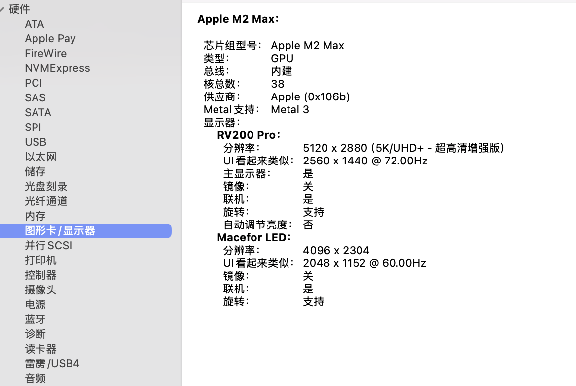 Mac Studio M2 主机,换了个10bit显示器,接线之后以后再系统信息的显示里面看看《帧缓冲深度》是不是30位彩色,发现居然不见了这个标识在别的电脑上相同的系统是可以显示的···不知道各位有这样的问题吗